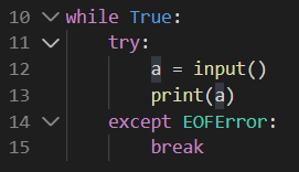 while True 문을 통하여 무한 반복을 하되 EOFError가 나게 되면 while 문을 탈출하여 끝이 나게 하는 코드다.