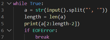 그리고 처음 두 글자와 맨 마지막 글자는 무조건 ['와, ']이기 때문에 3번째 글자부터 마지막 세 번째 글자까지 출력하게 하였다.