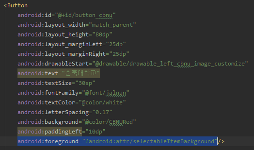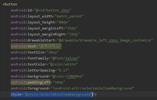 지금 위에 코드에서 보실 것은 딱히 없고 background가 이미 CBNURed색으로 빨간 색이 들어가 있습니다. ripple효과를 주려면 background를 써야 하는데 이미 color로 쓰고 있기 때문에 줄 수 있는 방법을 새로 찾아야 합니다.