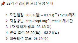 2021년 3월 6일쯤 SOPT 신입회원 모집 계획이 올라왔다.