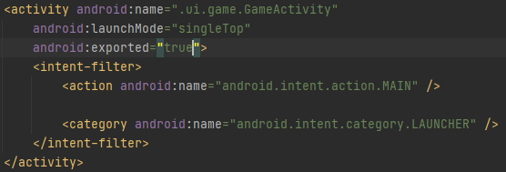 그렇게 어려운 것이 아니고 Intent가 있는(즉 시작 액티비티에) android:exported의 Boolean 값을 넣어주면 된다.
