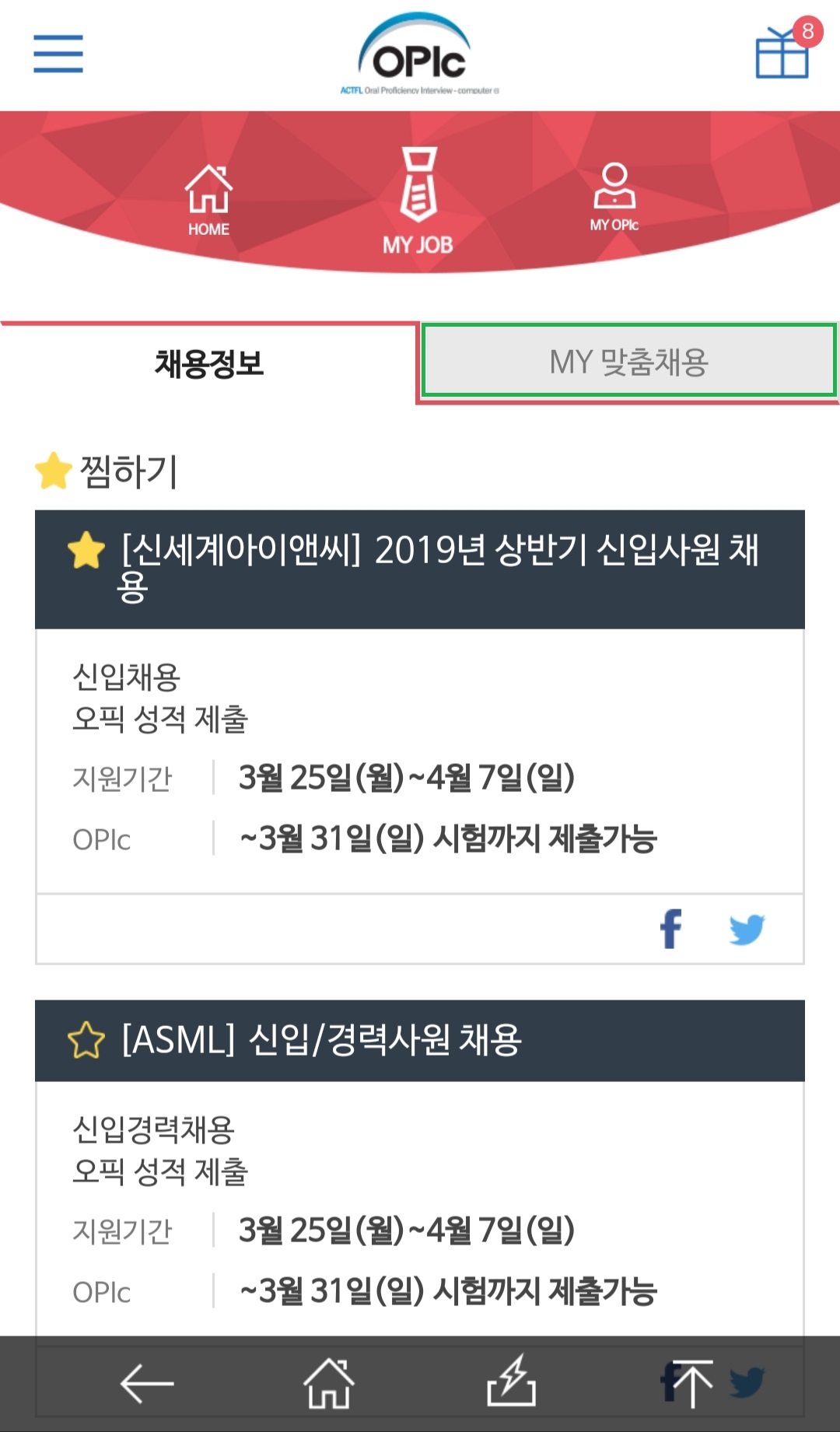 1. 먼저 구글 플레이스토어나 앱스토어에 접속하셔서 OPIc앱을 다운로드 해주세요.